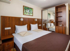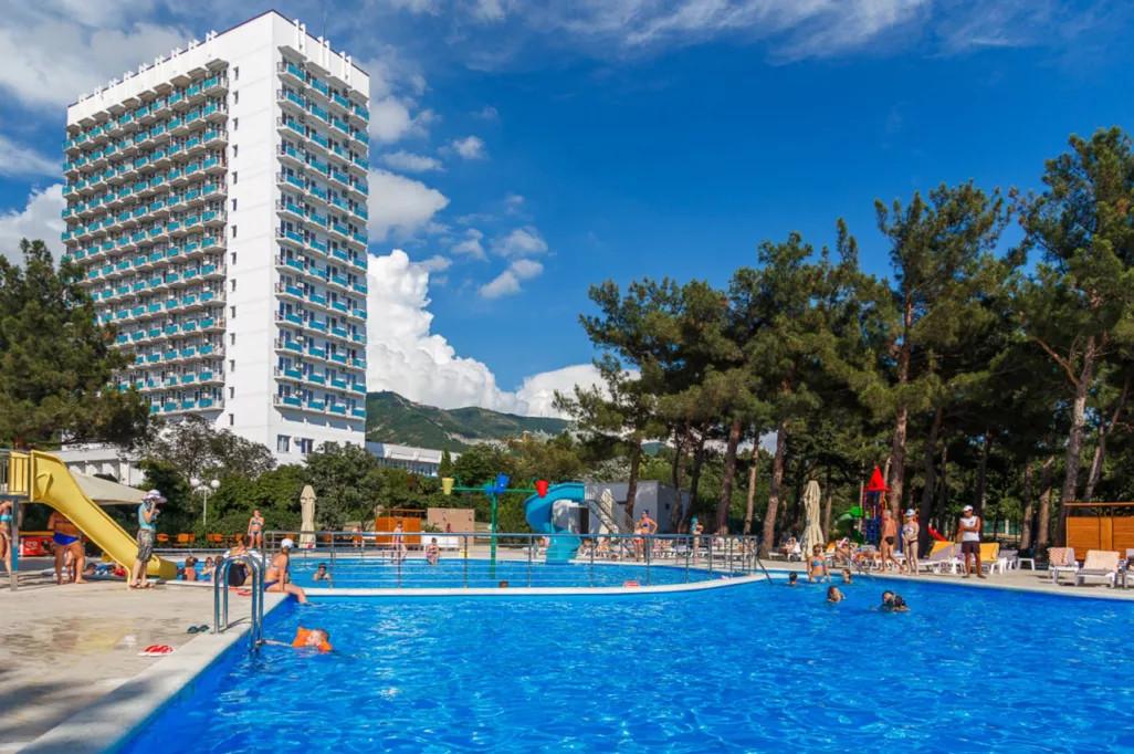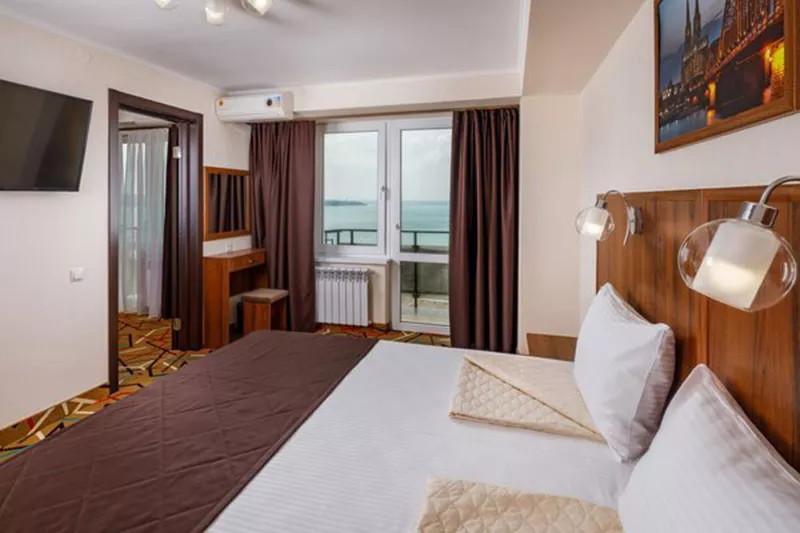 Спальный корпус состоит из 17 этажей. И он расположен на берегу моря. Из окон апартаментов открываются великолепные виды на бухту и горы. Номерной фонд представлен однокомнатными стандартами, двухкомнатными семейными и комфортными апартаментами.