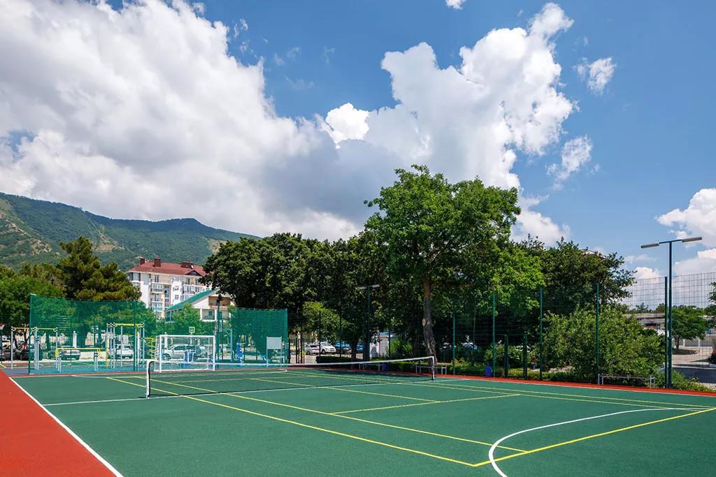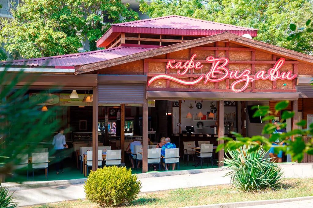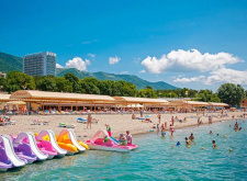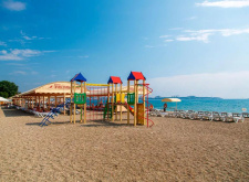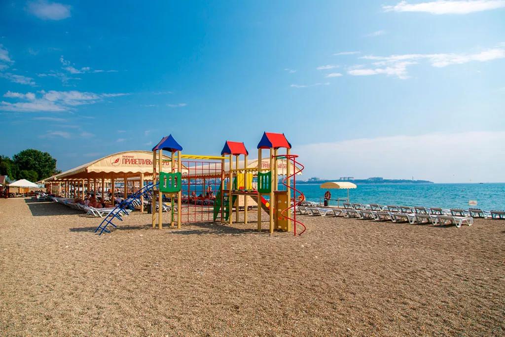 Пляж: Собственный пляж расположен в 50 метрах от территории. Береговая линия занимает 150 метров. Пляжная зона оснащена детской площадкой, лежаками, аэрариями, зонтиками, душевыми, раздевалками, туалетами.