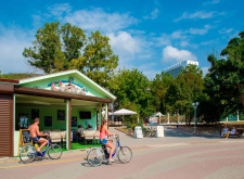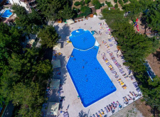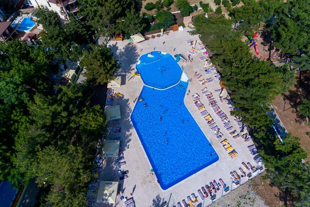 - открытый бассейн с зоной отдыха.Дополнен зоной с шезлонгами и зонтиками. В бассейне есть детская чаша, где глубина варьируется от 0,4 до 0,7 м. Для малышей установлены водные аттракционы. Бассейн для взрослых занимает 427 кв. м. Он оснащен удобными лестницами. Глубина достигает 1,4 м. В ночное время плавательный комплекс имеет подсветку.
