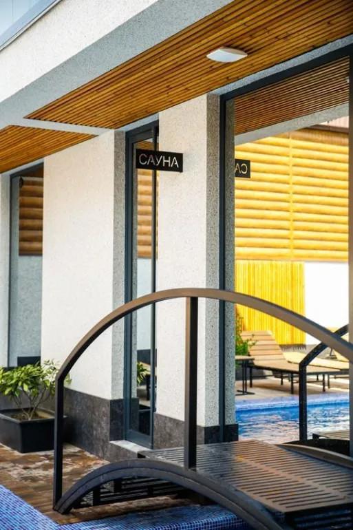 В номере: терраса, вид на бассейн, двуспальная кровать, кресло-кровать, душ, санузел, фен, туалетные- косметические принадлежности, комплект полотенец, ТВ панель, сплит-система, мини-холодильник, чайная станция, Wi-Fi, халаты, тапочки, шкаф-гардероб.