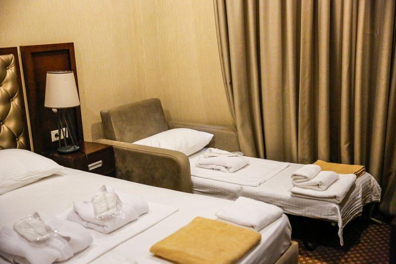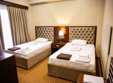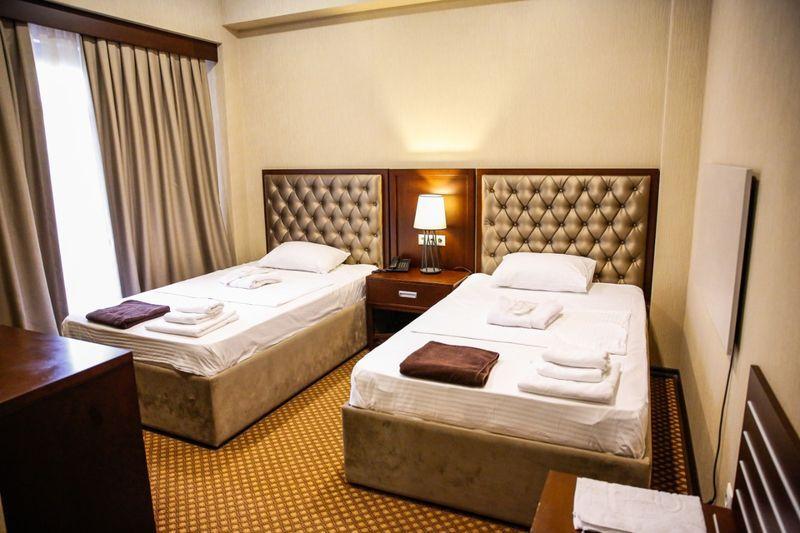 В номере: две односпальные кровати, душ, санузел, фен, туалетные- косметические