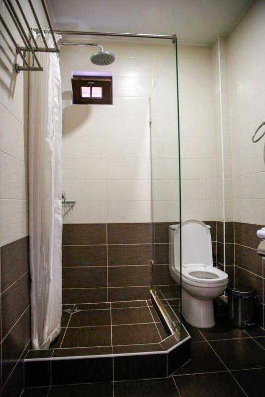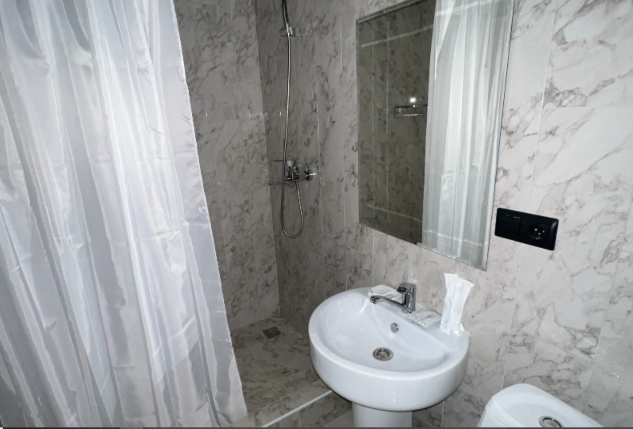 В номере: двуспальная кровать, душ, санузел, фен, туалетные- косметические