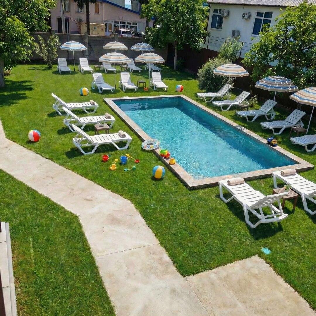 Пляж: Галечный, необорудованный, поселковый. Пляж – 50 м, 2 минуты пешком. Отель предоставляет пляжные полотенца.