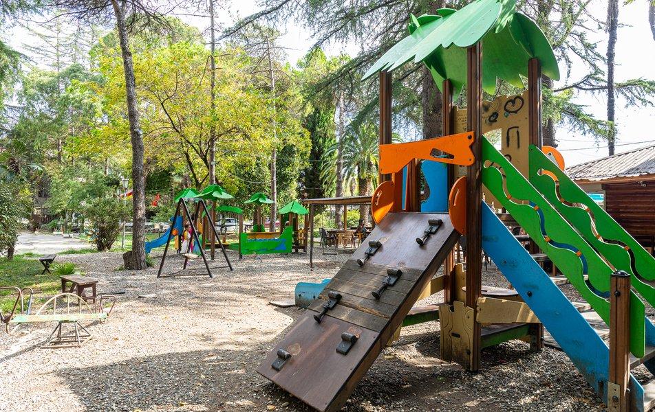 У здравницы есть обширная собственная огороженная и охраняемая территория – с красотой тенистых кипарисовых и эвкалиптовых аллей, экзотичных цветников и оригинальных скульптур, на берегу Сухумской бухты. В этом своеобразном городке расположен 14-этажный корпус «Бриз» с лифтами. Жилой фонд санатория составляют номера категорий «люкс», «полулюкс», «стандарт» и «эконом». Все номера комплекса имеют отдельные санузлы с душем и оборудованы набором необходимых бытовой техники: кондиционером (вентилятором), холодильником и телевизором.