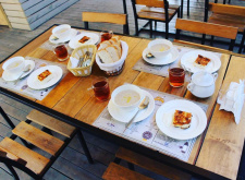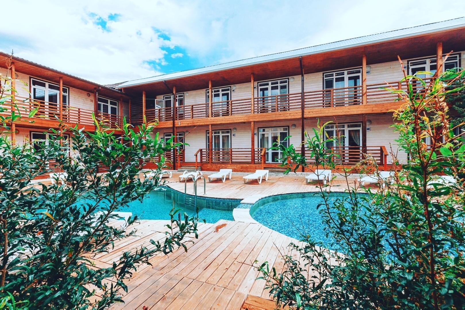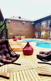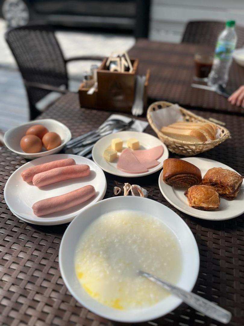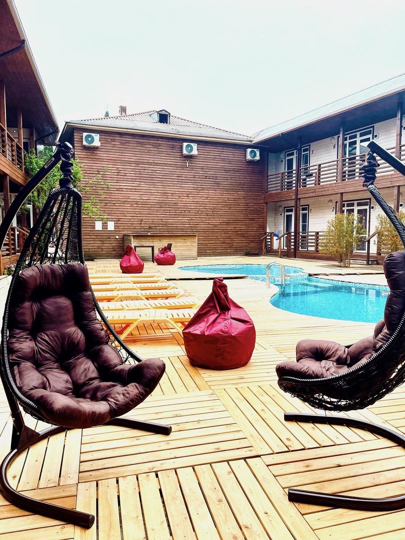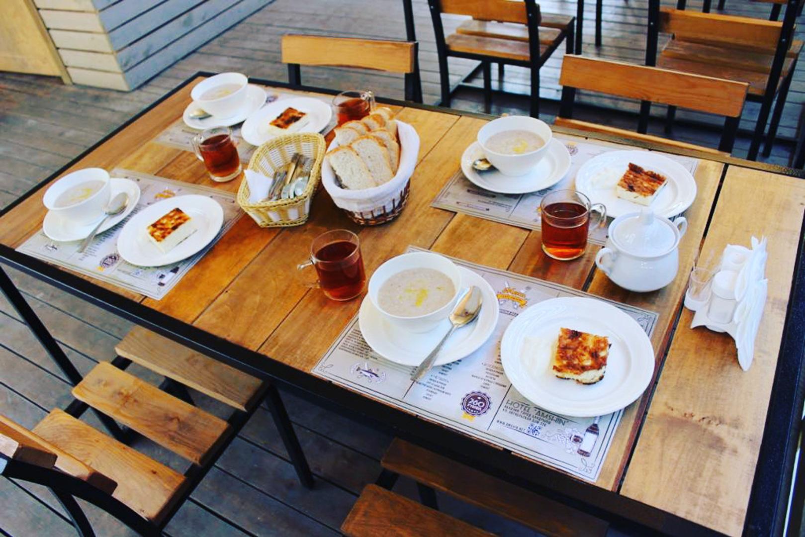 На территории расположено собственное кафе ( где гости завтракают и обедают -что входит в стоимость проживания), вечером кафе работает по меню.