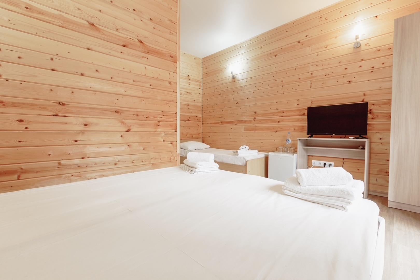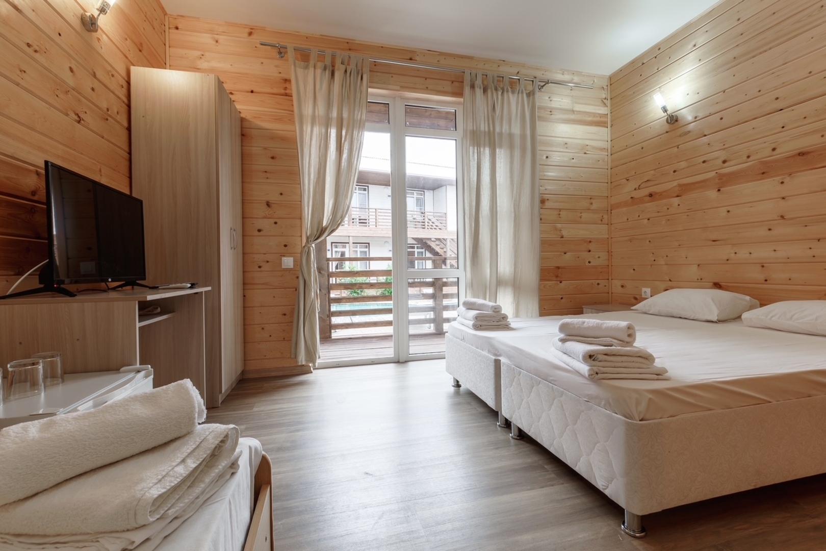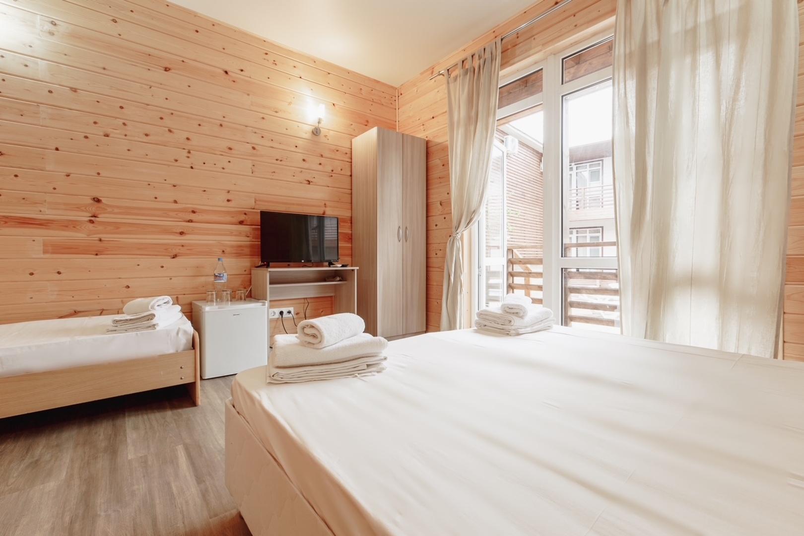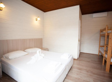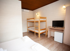 Двуспальные кровати (гостиничные боксы) размер 1,60 на 2,00 Double/Twin, двухъярусная кровать размер 80 на 2,00 на двухъярусной кровати размещаются дети c 2 до 14,99 лет, бутылка воды (комплементарно при заезде), гигиенические принадлежности (комплементарно при заезде), полотенца по 3 на каждого гостя включая и пляжное, душевая, холодильник, кондиционер, телевизор, шкаф, письменный стол. Доп. мест нет.