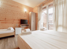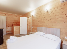 Двуспальные кровати (гостиничные боксы) размер 1,60 на 2,00 Double/Twin, односпальная кровать размер 80 на 2,00, бутылка воды (комплементарно при заезде), гигиенические принадлежности (комплементарно при заезде), полотенца по 3 на каждого гостя включая и пляжное, душевая, холодильник, кондиционер, телевизор, шкаф, письменный стол. Доп. место евро-раскладушка.