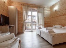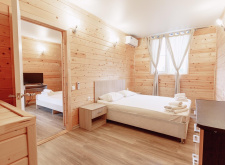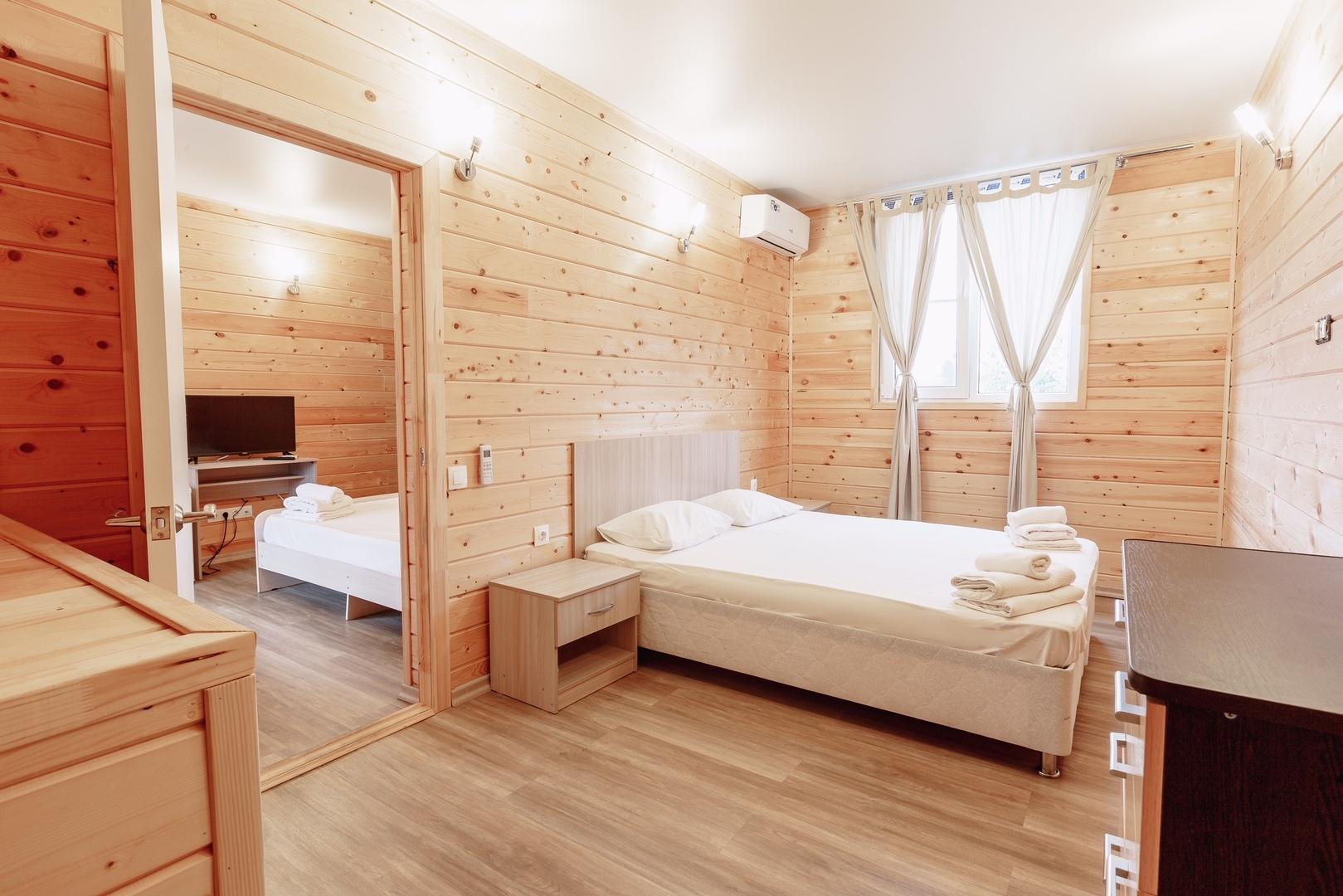 2 Двуспальные кровати (одну кровать возможно трансформировать в 2 односпальные) размер 1,60 на 2,00. бутылка воды (комплементарно при заезде), гигиенические принадлежности (комплементарно при заезде), полотенца по 3 на каждого гостя включая и пляжное, душевая, холодильник, кондиционер, телевизор, шкаф, письменный стол. Доп. место евро-раскладушка.