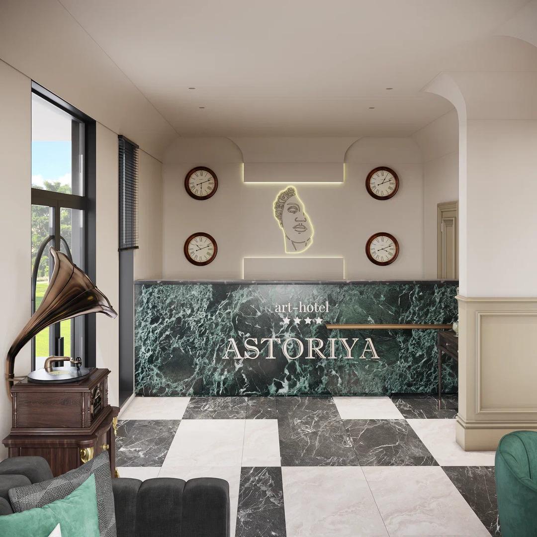 Философия арт-отеля показать гостям Абхазии удивительный мир талантов, которых объединяет любовь к искусству.Смысловым центром отеля являются арт-объекты абхазских художников, дизайнеров, архитекторов, скульпторов и фотографов. Около ста расписанных вручную панно представлены в 33 номерах отеля и гостевых зонах. Произведения искусства были созданы художниками на волне вдохновения концепцией, специально для арт-отеля "Astoriya hotel 4 *.
