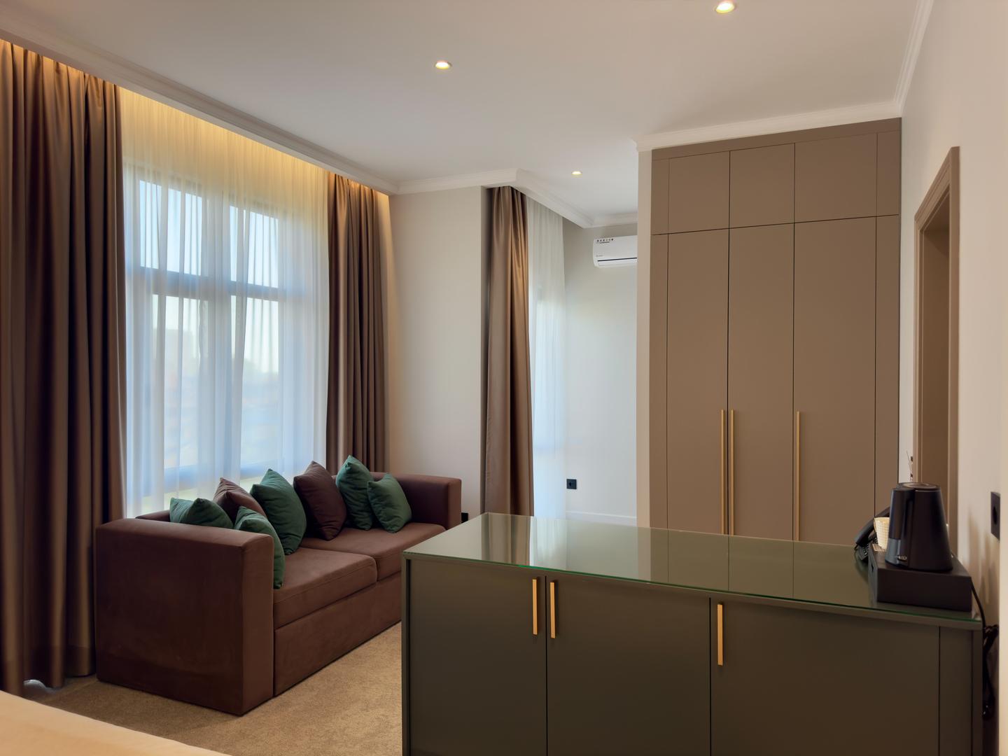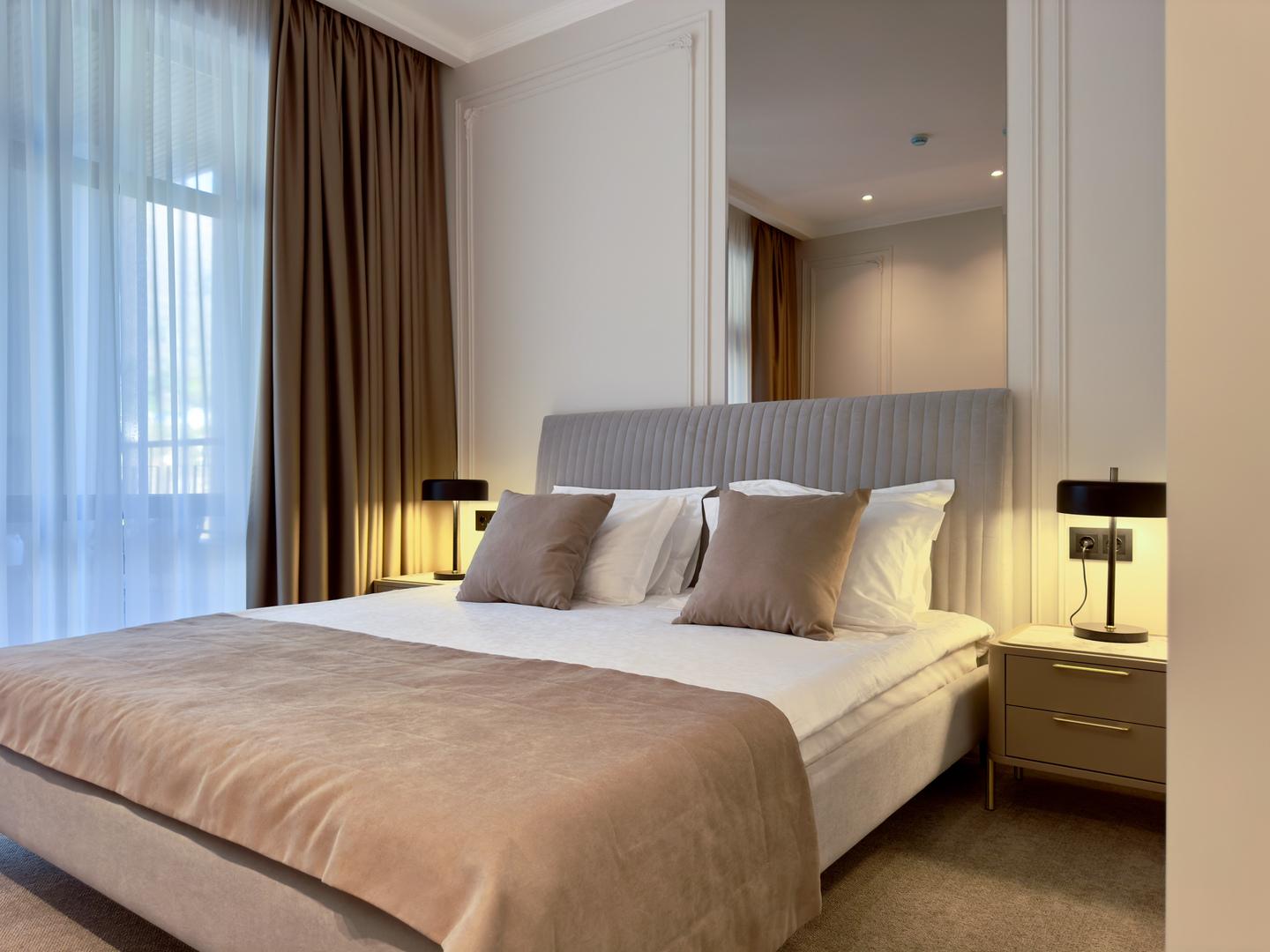 Двухкомнатный номер с изысканным интерьером для комфортного проживания в роскошных интерьерах. Подходит для размещения двоих гостей на основных местах и двоих – на дополнительном месте.