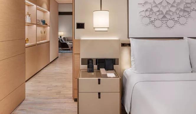 Площадь номера 102 кв.м, спальня, ванная комната(отдельная ванна и душ), гостевой туалет, отдельная спальня и гостиная , полноценное рабочее место, балкон, вид на море, кровати (King). Максимальное размещение 2 взр + 2 реб (0-11.99) или 3 взр.