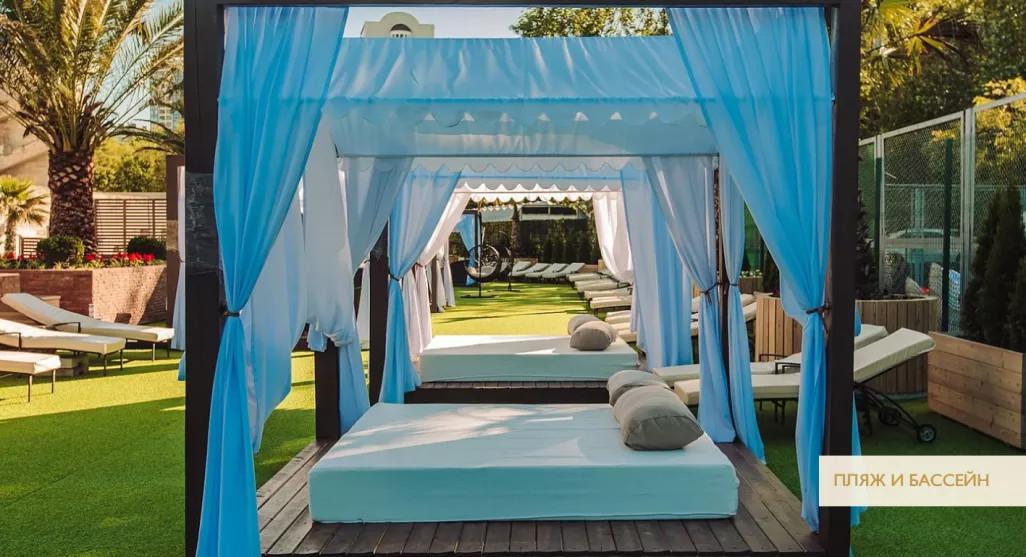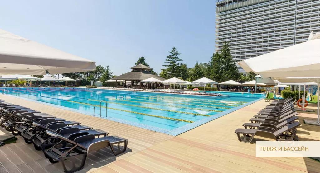 Важно: Открытый плавательный бассейн с подогреваемой морской водой + 28° С: для Гостей, проживающих в Гранд Отеле "Жемчужина" посещение бассейна бесплатное (в период его работы)) |