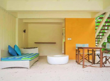 Площадь 142 кв. м, 2 этажа, 2 спальни, кровать King-size, 2 односпальные кровати, гостиная зона, терраса, прямой доступ к пляжу.