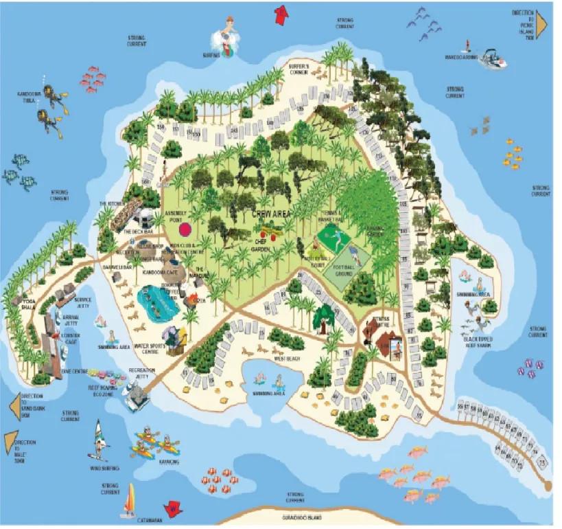 Описание отеля: Курортный отель Holiday Inn Kandooma Maldives расположен на Южном атолле Мале, в 35 км к югу от столицы Мале, всего в 45 минутах езды на скоростном катере от международного аэропорта Велана. Представители нашего аэропорта встретят вас после прохождения иммиграционных и таможенных формальностей, чтобы сопроводить в зону ожидания, прежде чем отправиться на скоростном катере, который доставит вас на курорт.